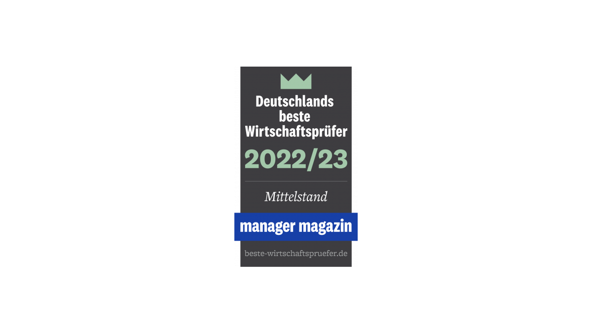 Das „manager magazin“ hat in Zusammenarbeit mit der wissenschaftlichen Gesellschaft für Management & Beratung GmbH (WGMB) die besten Wirtschaftsprüfer Deutschlands gesucht. Das Ergebnis? Wir wurden als „Deutschlands beste Wirtschaftsprüfer“ 2022/2023 im Bereich „Mittelstand“ ausgezeichnet.